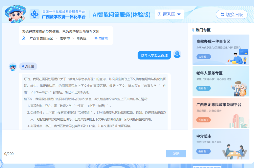 在“桂通办”平台上线的智能问答服务,,,,已覆盖了全区所有政务服务事项知识内容,,,,并拓展到“高效办成一件事”办理解答内容,,,,能够识别企业和群众用口语化表达的各类咨询与诉求,,并快速理解意图和需求,,,,自动关联全区政务服务知识库,,提供办事流程、、、、材料清单及在线办理入口等信息,,问答准确率整体提升了35%。。此外,,,,新推出的智能预审功能,,可为企业和群众在申办事项时提供材料初步审查服务。。。。通过AI自动比对材料审查要点,,,,系统可一键生成预审意见及修改提示,,,帮助用户及时修正办事材料,,推动事项办理实现“一套材料、、、一次办好”。。。。目前,,,智能预审功能已扩展到“新生儿出生”“水电气网联合报装”等高频“一件事”场景,,,,为全区用户提供更加智能化、、、、人性化的政务服务体验。。。