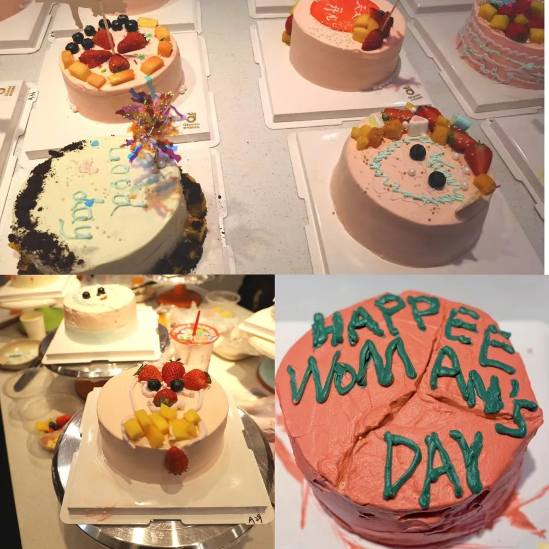 女职工“智慧碰撞”,,,各显神通,,经过一番精心雕琢,,一个个“颜值爆表”、、、、创意满满的蛋糕在快门按下的瞬间定格成专属我们的“甜蜜记忆”。。。