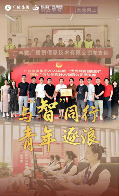 近日,,广西数广信创信息技术有限公司团支部荣获广西投资集团2024年度“优秀共青团组织”称号。。。这一荣誉既是对数广信创公司青年团队工作成绩的充分肯定,,也是对数广信创公司青年勇于创新、、、实干担当的高度认可,,更是对数广信创公司团支部未来发展的激励与鞭策。。